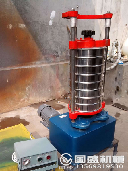 2、將需篩分化驗的物料倒入較上層的篩子內,蓋好篩蓋然后按放在振擺儀承篩座內。
